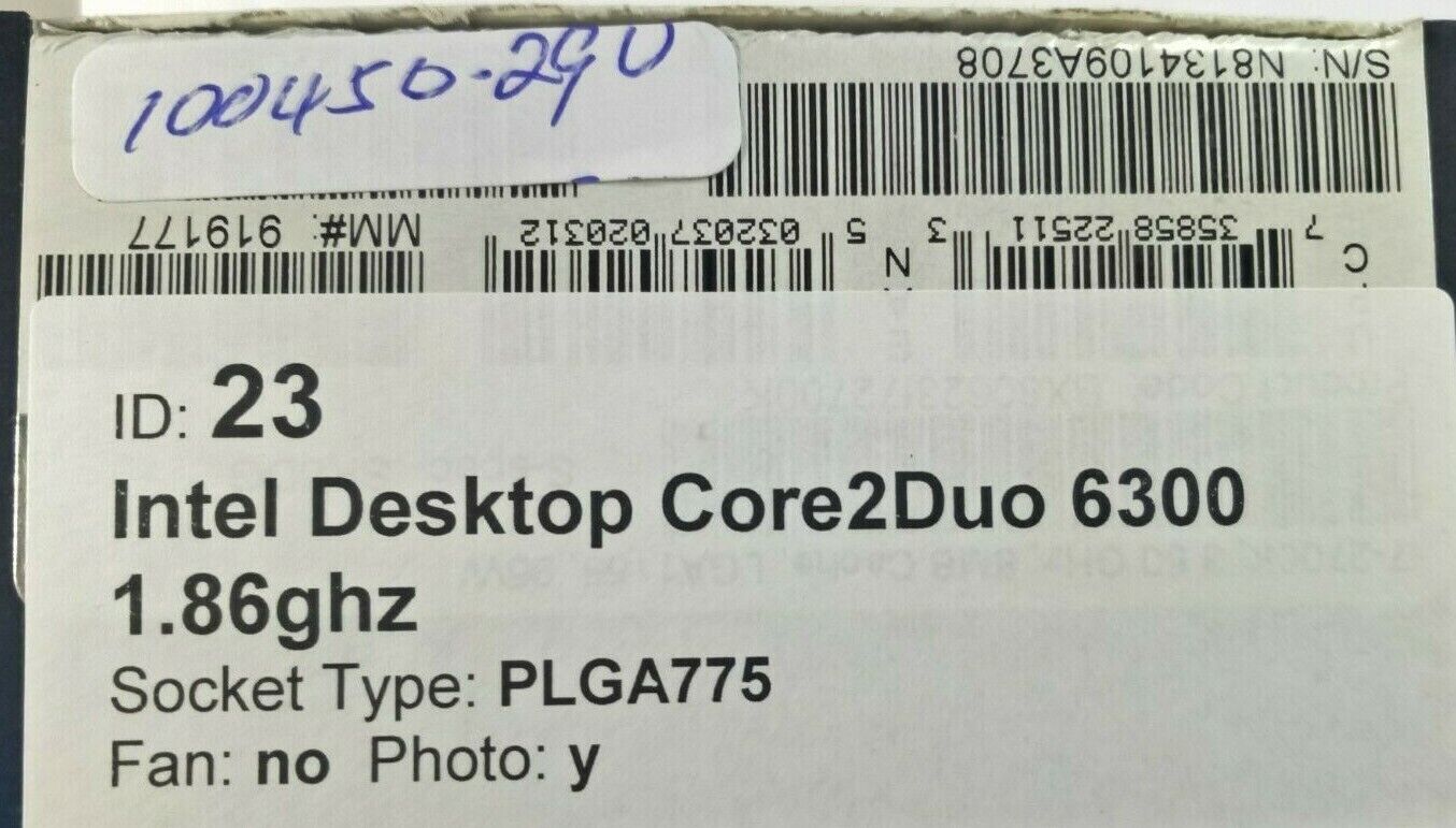 CPU Intel: Socket 775, Core™2 Duo  Model 6300 1.86GHZ/2M/1066/06 Conroe