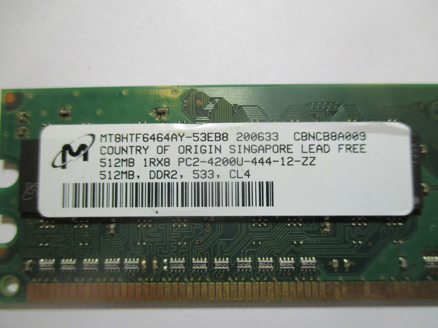 512MB DDR2-533MHz PC2-4200 DESKTOP RAM. MICRON Single Sided MT8HTF6464AY-53EB8