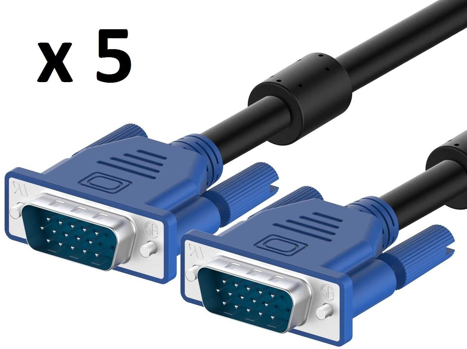 VGA Cable M-M 1.8M, (5pc) Light Weight, Black, With Ferrite cores (chokes)